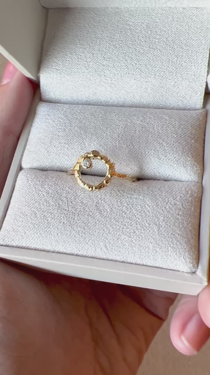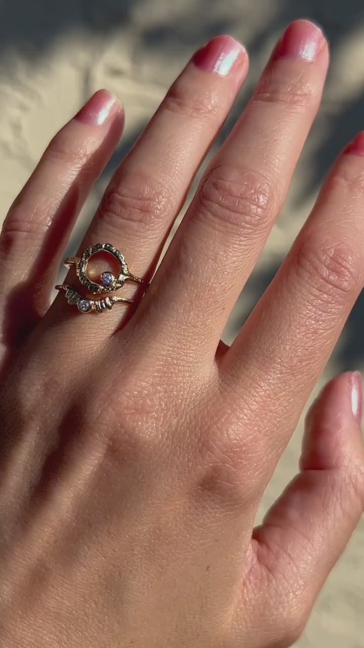 Charmingly asymmetrical with a dazzling diamond. Pairs beautifully with contoured bands. Expression of self-love and bold style with everyday looks, or a perfect gift. Communion By Joy created this ring with the intention of helping you be able to harness the creative fire within, channel inspiration from the Divine and recognize your life's purpose