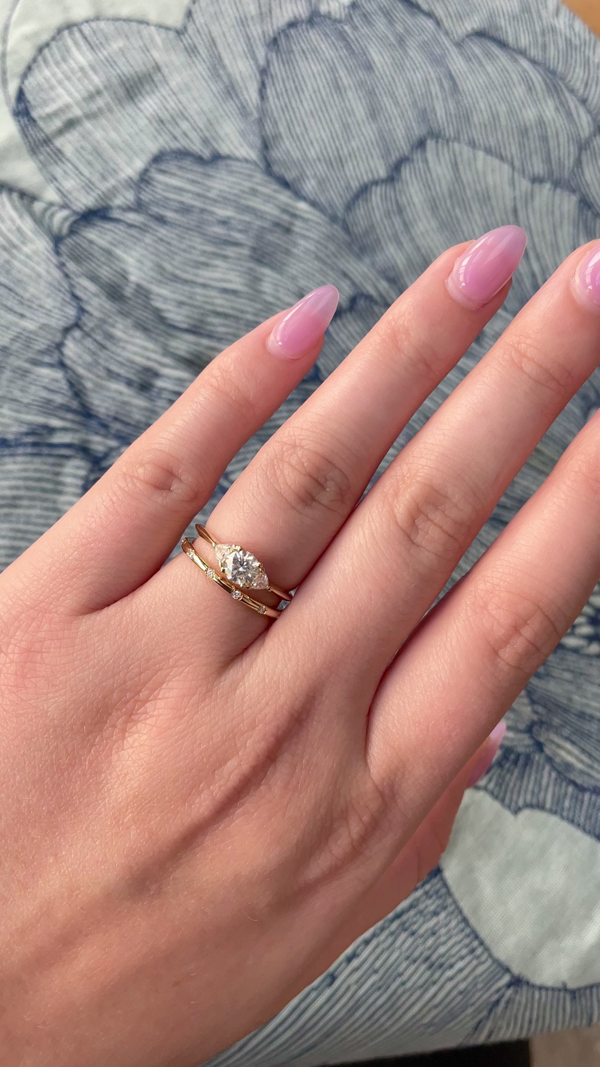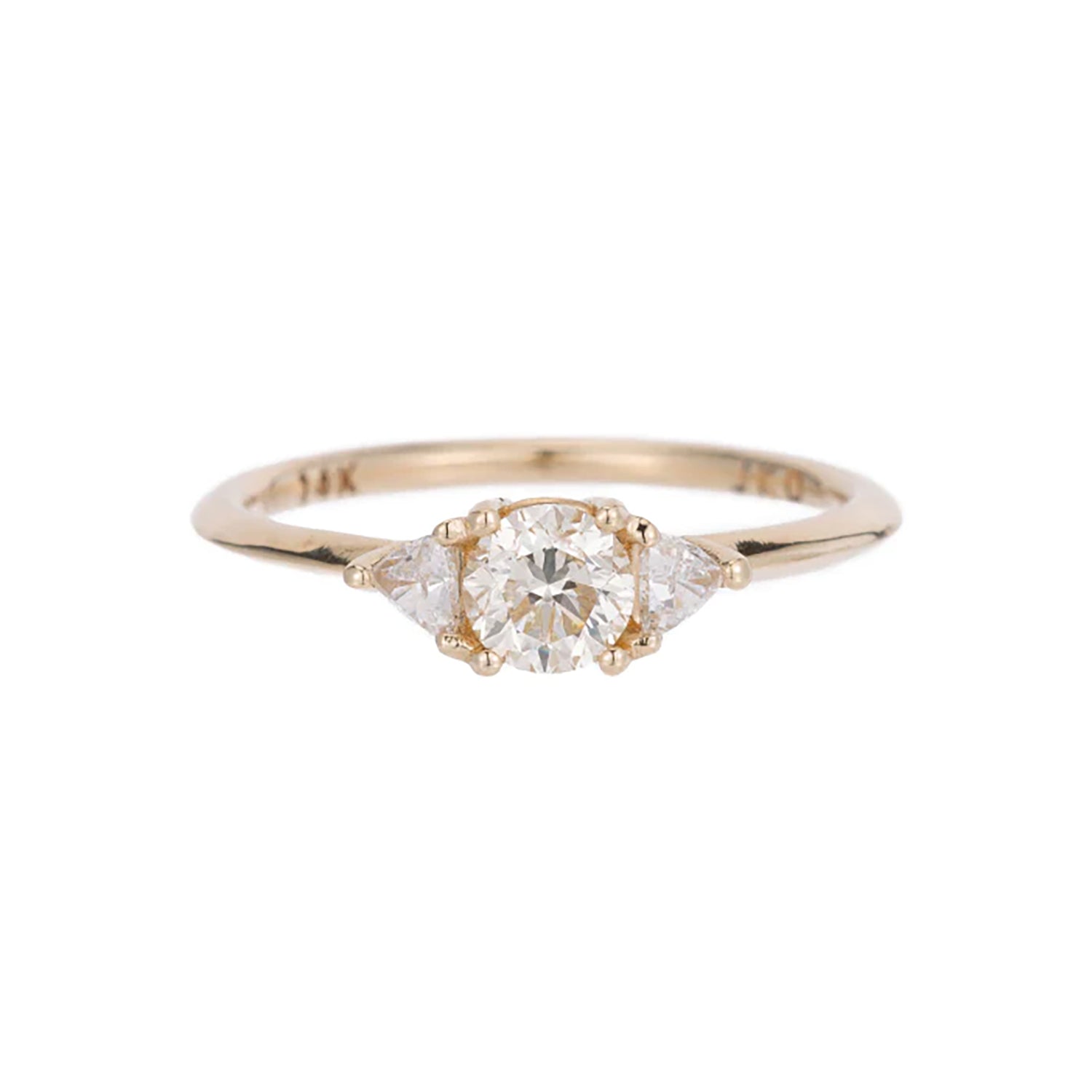 -The center stone is a 0.5ct diamond flanked by 2 3mm trillion diamonds.