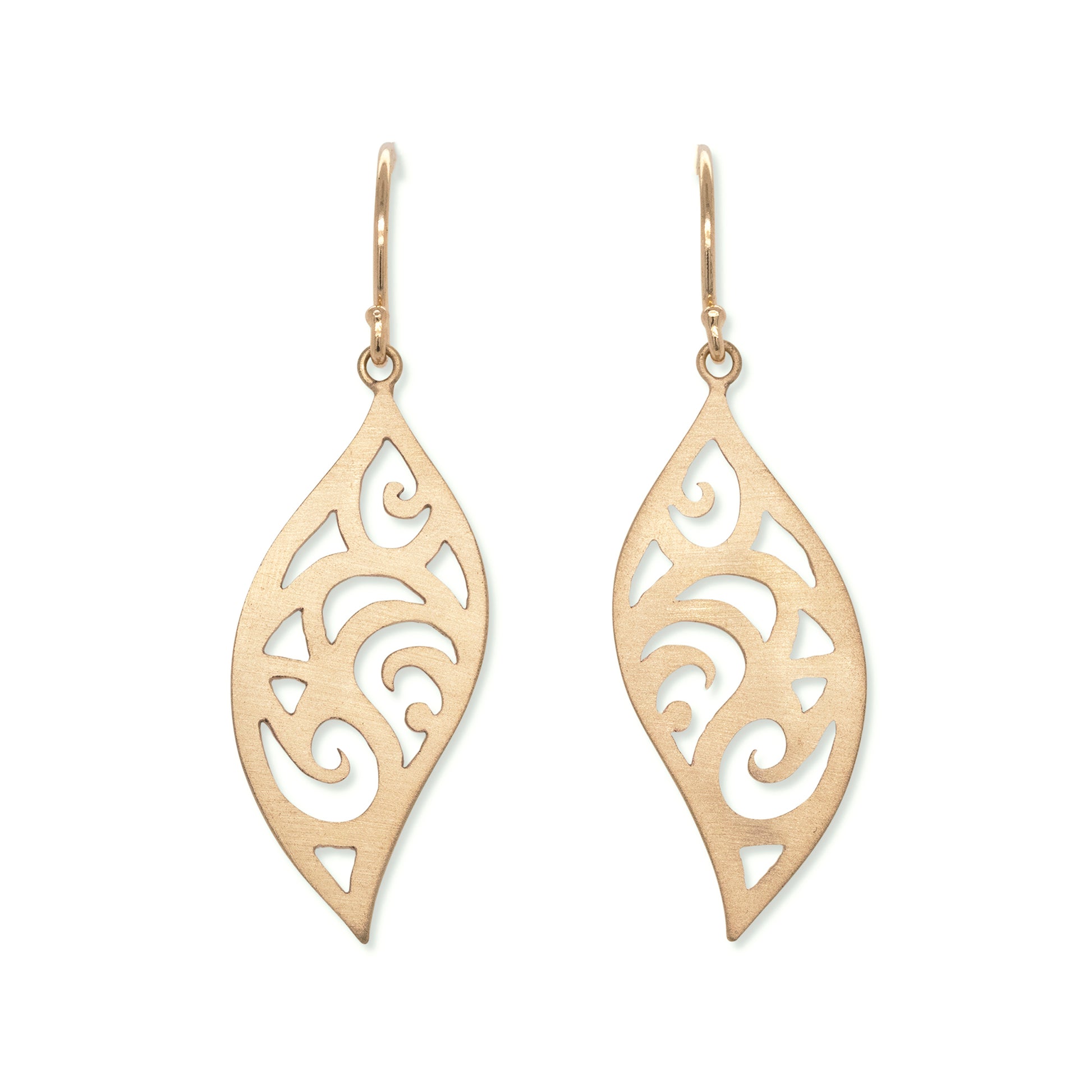 These leaf-like dangle earrings hang elegantly and offer lots of fun movement. Wear these earrings when you want to add a bright glimmer of gold and warmth. They pair beautifully with dainty studs or as standalones.