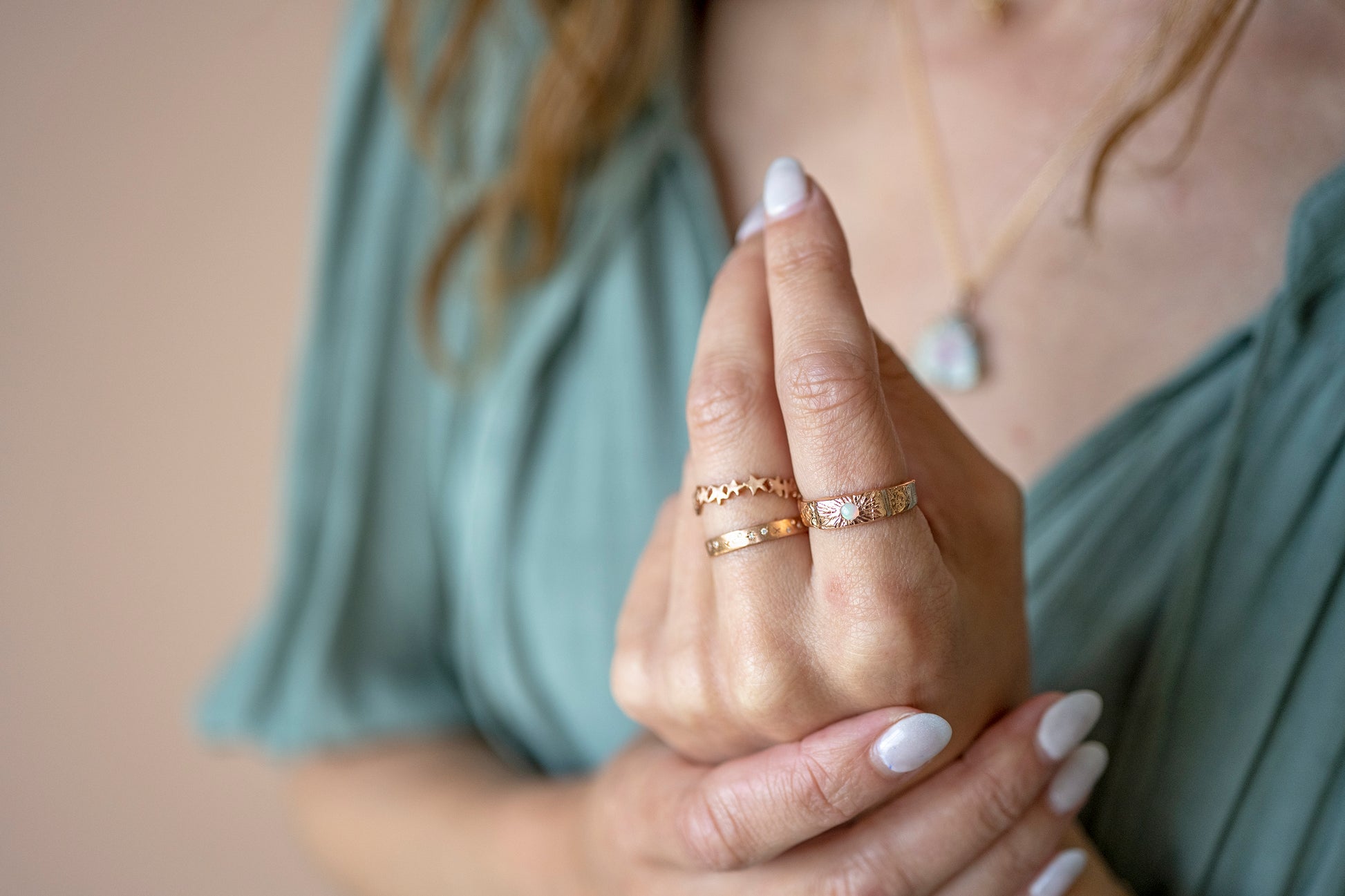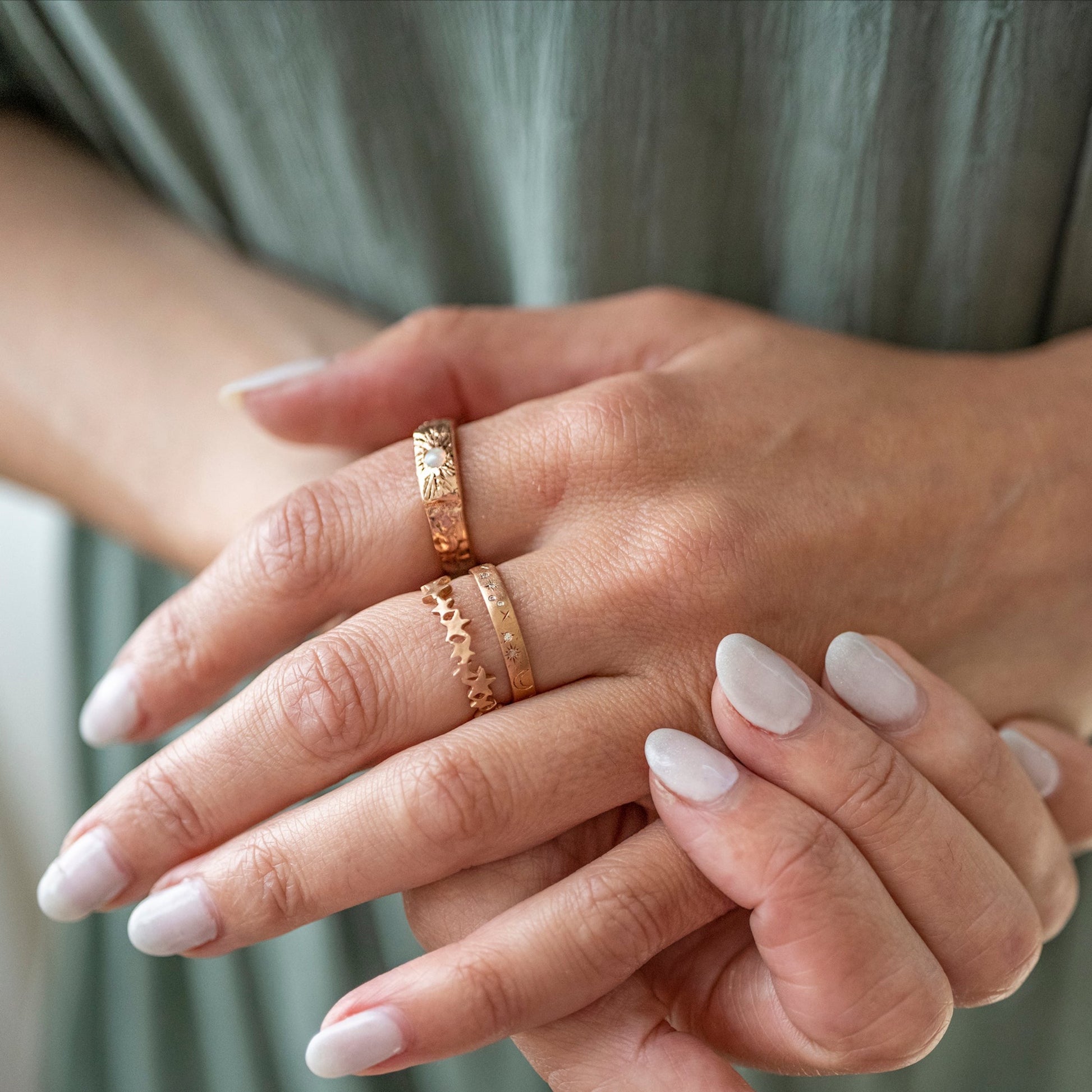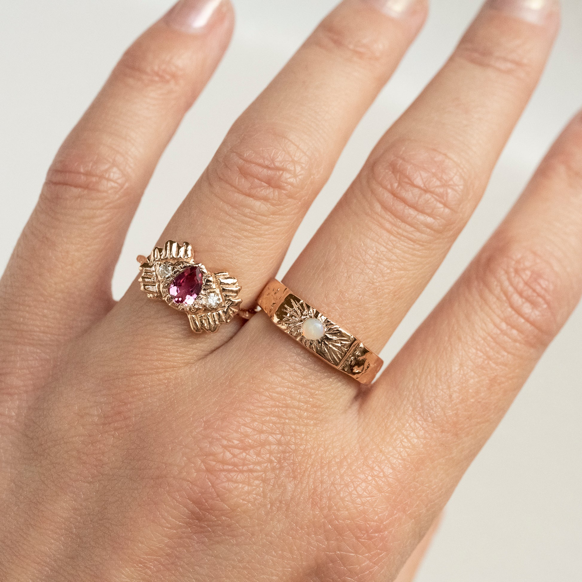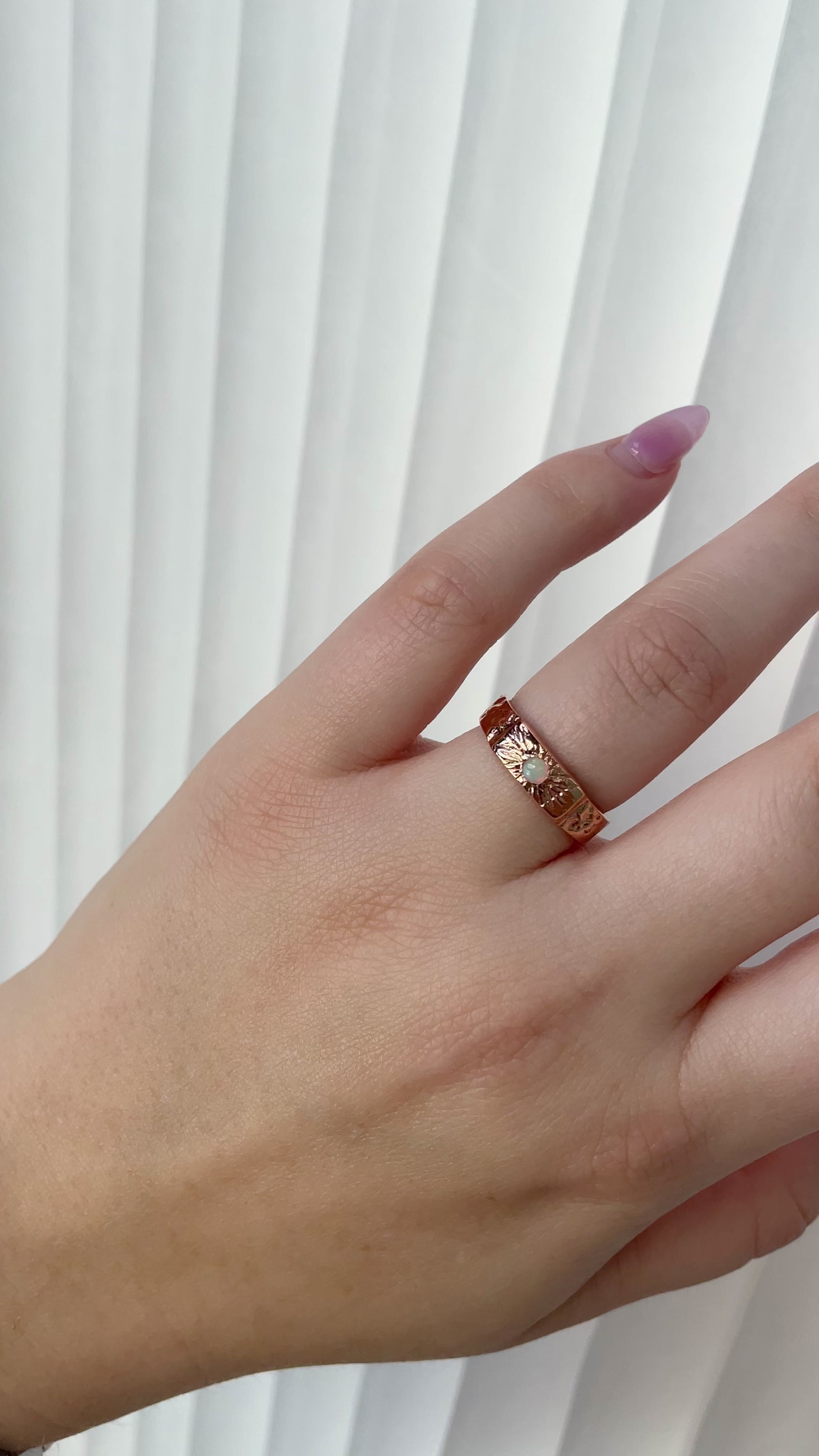 This warm, opal & rose gold ring represents finding the beauty and light in life whenever you wear it. It implores you to look at everything with the eye of love. We think this piece looks especially gorgeous with other rose gold rings.