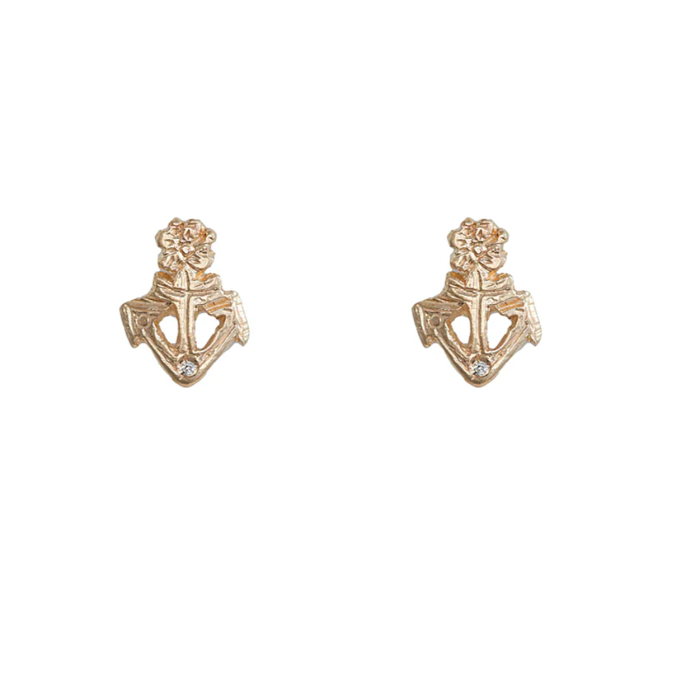 These exquisite hand-carved flower anchor diamond stud earrings are a symbol of hope and perfect for those who love the ocean. Their unique design and high-quality diamonds make for a stunning addition to any jewelry collection. Show your love for the sea with these timeless and elegant earrings.