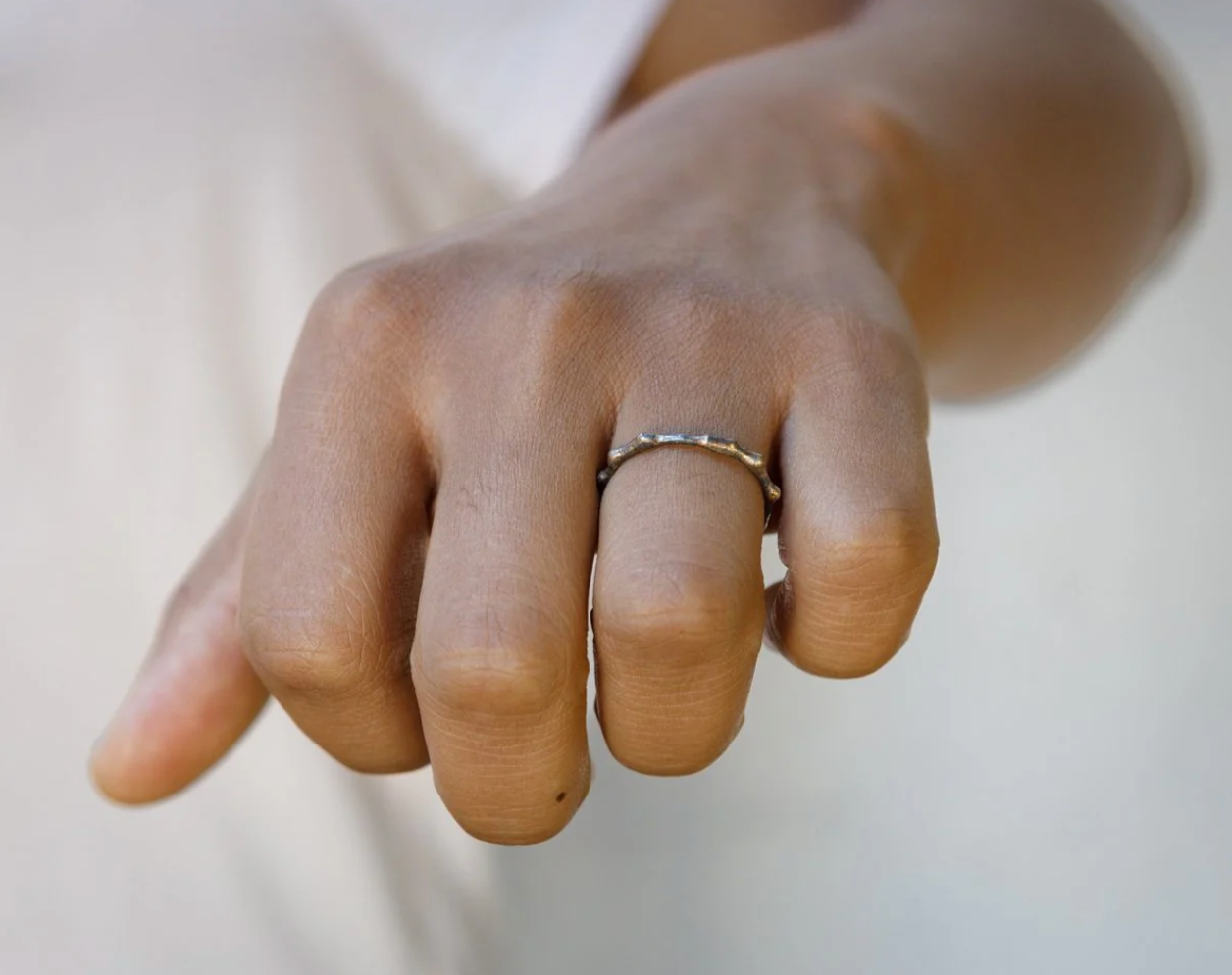 -The gold and silver embedded band is made of 14k - 24k yellow, rose, and white gold embedded into oxidized sterling silver