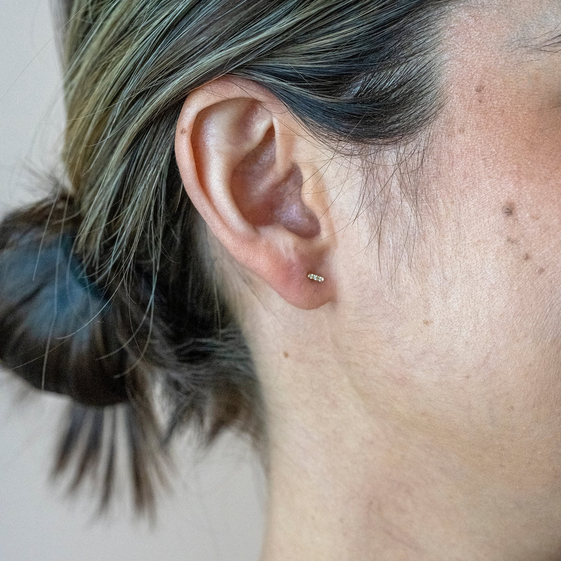 Expertly crafted with beautiful white diamonds, these Equilibrium Studs are the perfect addition to any jewelry collection. Made with precision and care, these earrings are designed to complement any outfit and add a touch of elegance and sophistication. Experience the timeless beauty and quality of these stunning studs.
